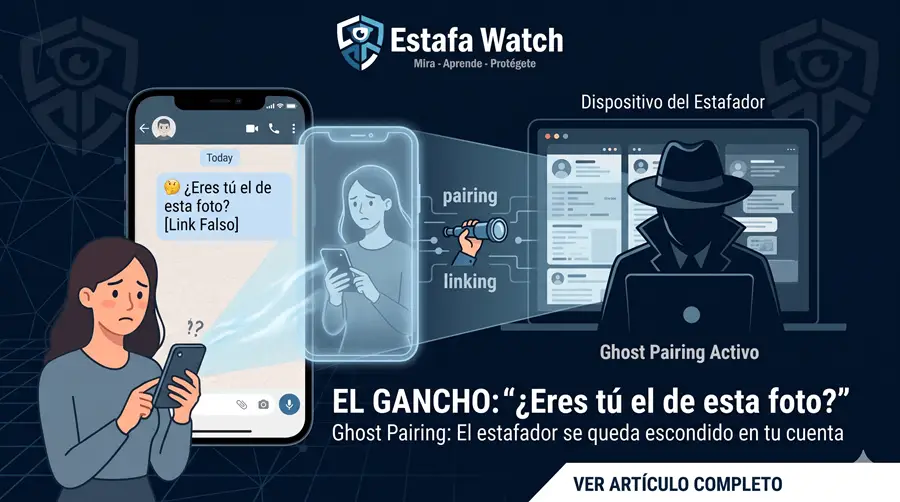 En EstafaWatch, hemos detectado un aumento masivo en el robo de cuentas a través de una técnica llamada “Ghost Pairing” o vinculación fantasma. A diferencia de otros robos donde pierdes el acceso a tu app, aquí el estafador se queda escondido en tu cuenta mientras tú la sigues usando.